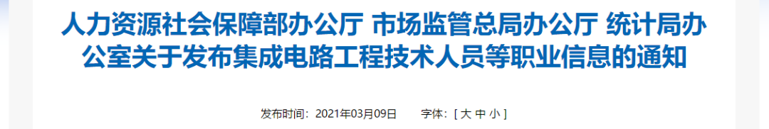 人力资源社会保障部办公厅 市场监管总局办公厅 统计局办公室关于发布集成电路工程技术人员等职业信息的通知